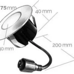 Deze spot heeft een diameter van 75mm. en zijn voorzien van een aansluitkabel van 18cm.