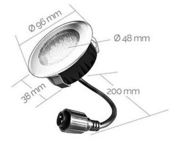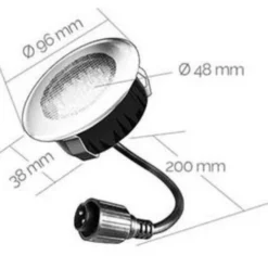 Deze spot heeft een diameter van 95mm. en zijn voorzien van een aansluitkabel van 18cm.