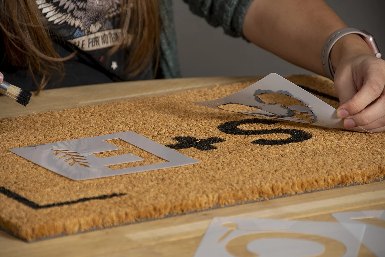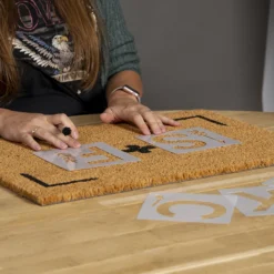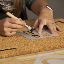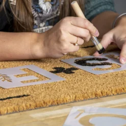 Fleur de entree op met deze kokosmat die u zelf kunt voorzien van letters! U kunt met de meegeleverde letters, verf en de kwast de mat decoreren. De sterke kokosvezels zijn ideaal om de zolen van schoenen en laarzen schoon te maken. De mat blijft op zijn plaats dankzij de pvc-rug waardoor uw veilig uw schoenen kunt vegen.