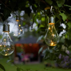 De Solar 4-set Bulb van Luxform is de meest eenvoudige manier van het plaatsen van verlichting in uw tuin. u heeft immers geen stroomkabels nodig! Alleen voldoende (zon)licht, zodat de accu (vervangbare batterij) via het zonnepaneel overdag bijgeladen kan worden. Zodra het ’s avonds schemerig begint te worden, zal de lamp automatisch aangaan. Afhankelijk van het aantal uren (zon)licht die dag, zal de lamp ongeveer 6 uren branden. Dit model heeft 4x warm witte led, dat samen met de industrial-look, geeft het een mooi sfeervol licht en is eenvoudig op te hangen met de bijgeleverde ophangclip.
